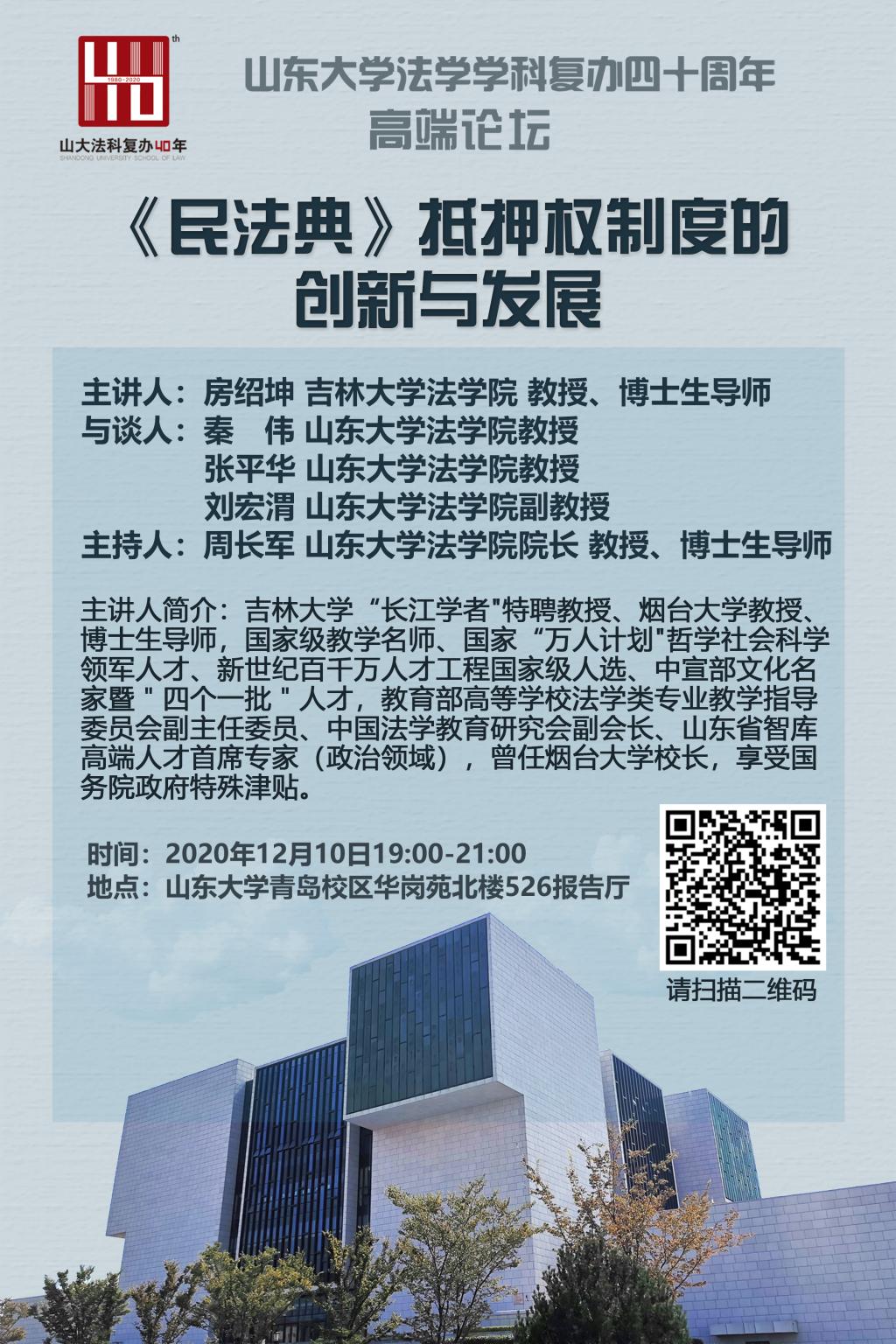 必赢官方网站入口法学学科复办四十周年高端讲坛:《民法典》抵押权制度的创新与发展