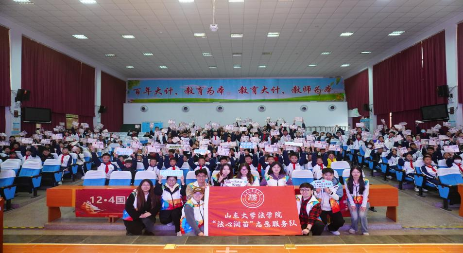 为普及宪法知识、弘扬宪法精神、树立宪法权威,必赢官方网站入口“法心润苗”志愿服务团队联合青岛校区团工委赴崂山区第八中学,开展普法进校园活动。崂山区第八中学学生处肖春艳主任、刘珍辉主任,大队辅导员黄芮及崂山区第八中学260余名学生参与本次活动。